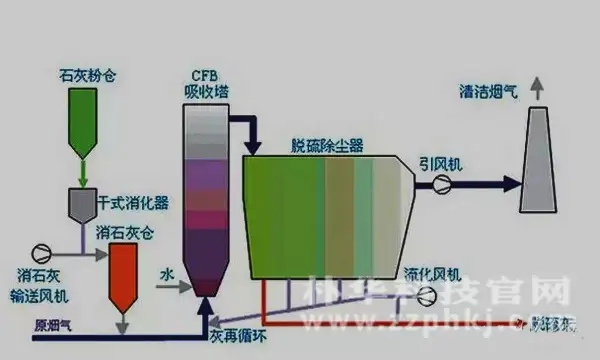 脱硫灰循环流化床烟气脱硫技术是运用脱硫剂的化学效应,对废气进行脱硫,脱硫效果明显。该法具有脱硫效率高、投资少、占地面积小的优点。但该技术的缺陷是低温状态下容易发生布袋除尘器滤袋的结露堵塞现象,而且还伴有压降大的问题,目前该技术尚有较大的改进空间。