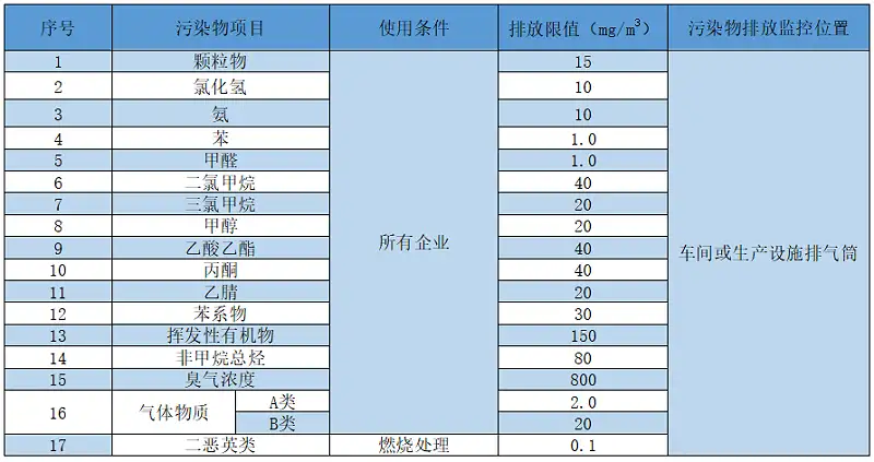 (2) 废气成分复杂, 污染物种类和浓度变化大,有机废气浓度较高,且溶剂废气中的VOCs废气大多具有恶臭性质;